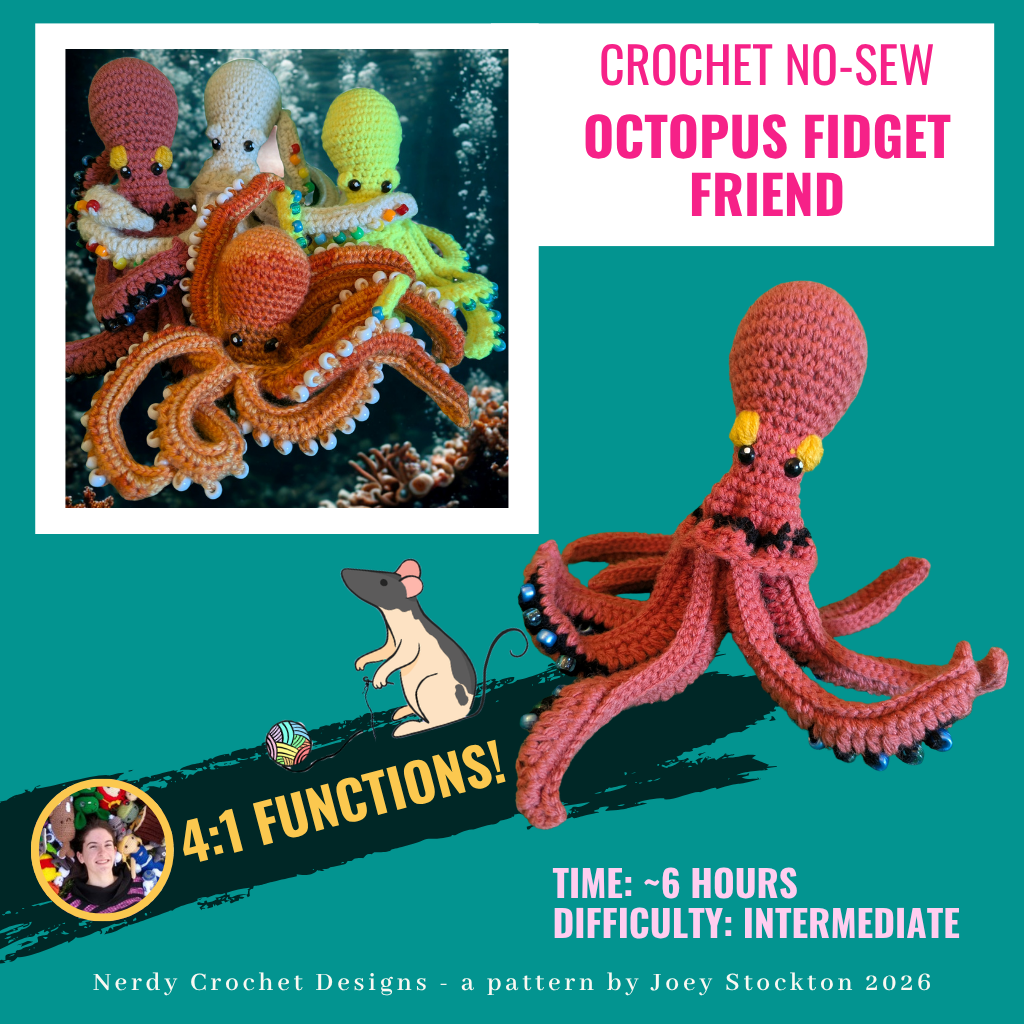 This incredible mollusk fidget plushie is designed with stressed individuals, those who need something cute to keep their hands busy, and neurodivergent friends in mind. The toy includes four unique fidget functions (a pop-it base, marble tube legs, rotating bead sucker-covered legs, and super satisfying clicking barratte tips for each tentacle, along with endless twisting, braiding, and curling possibilities. A toy like this can’t be beat!